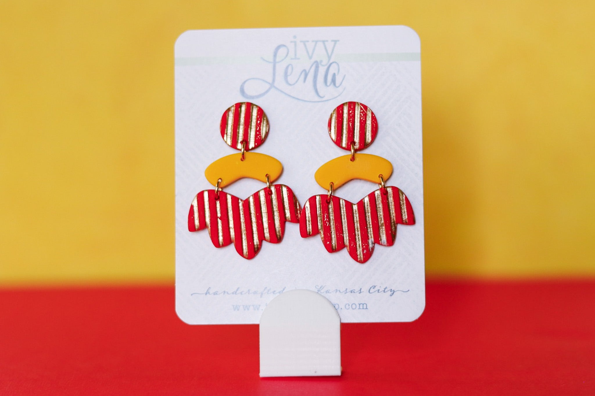 Handcrafted Polymer Clay Earrings- Red & Gold Stripe