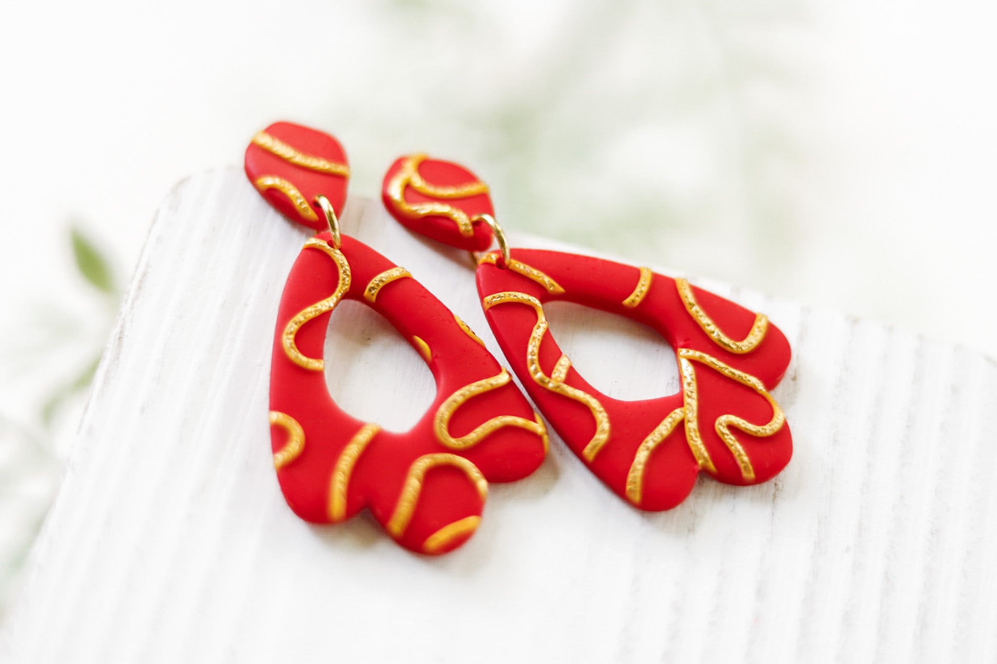 Handcrafted Polymer Clay Earrings- Red & Gold Rope