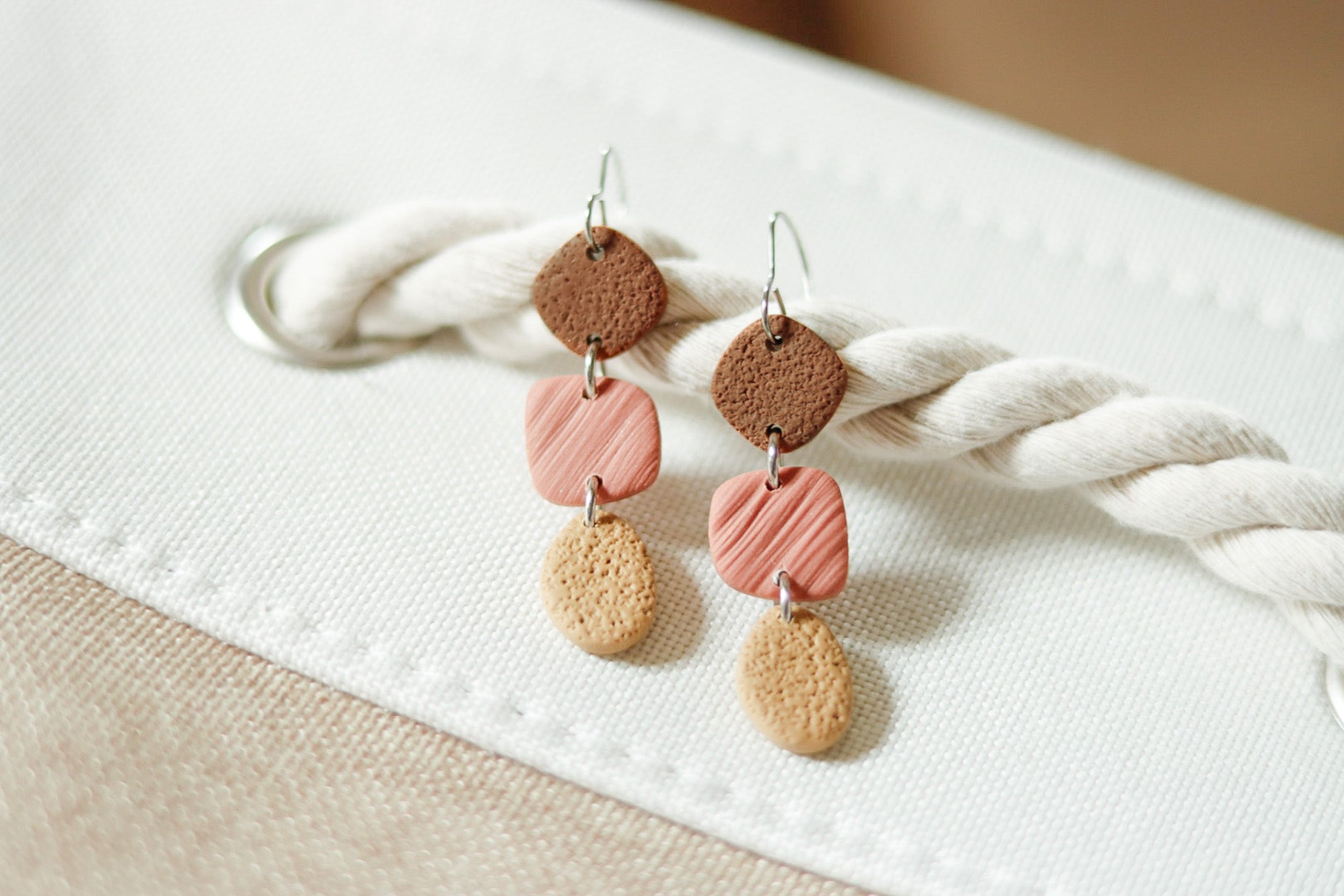 Handcrafted Polymer Clay Earrings- Brown, Blush, & Tan