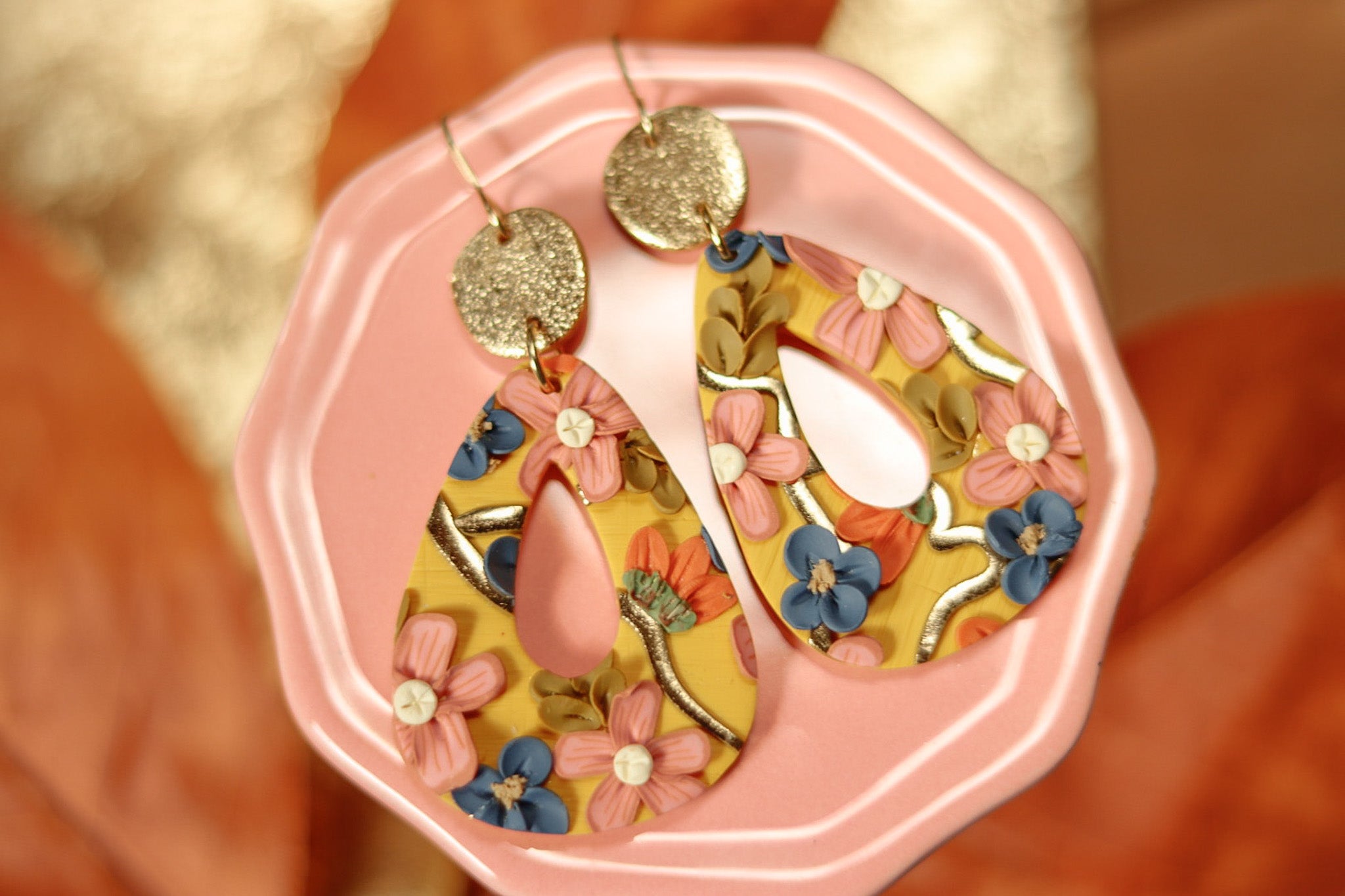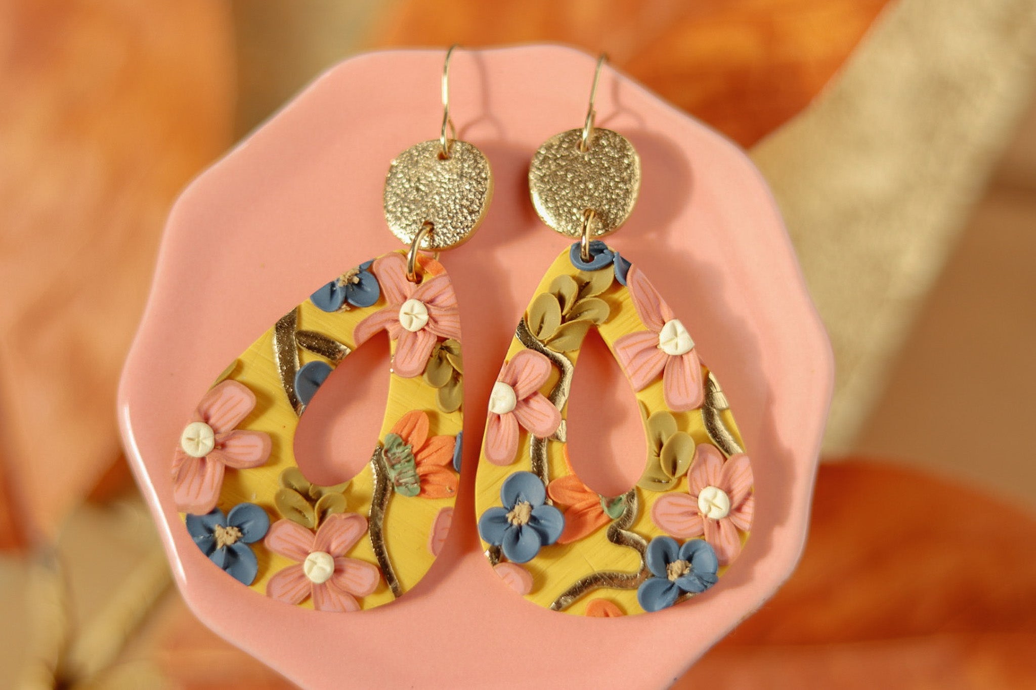 Handcrafted Polymer Clay Earrings- Fall Floral
