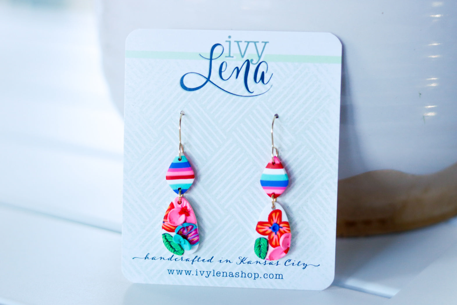 Handcrafted Polymer Clay Earrings- Vibrant Floral