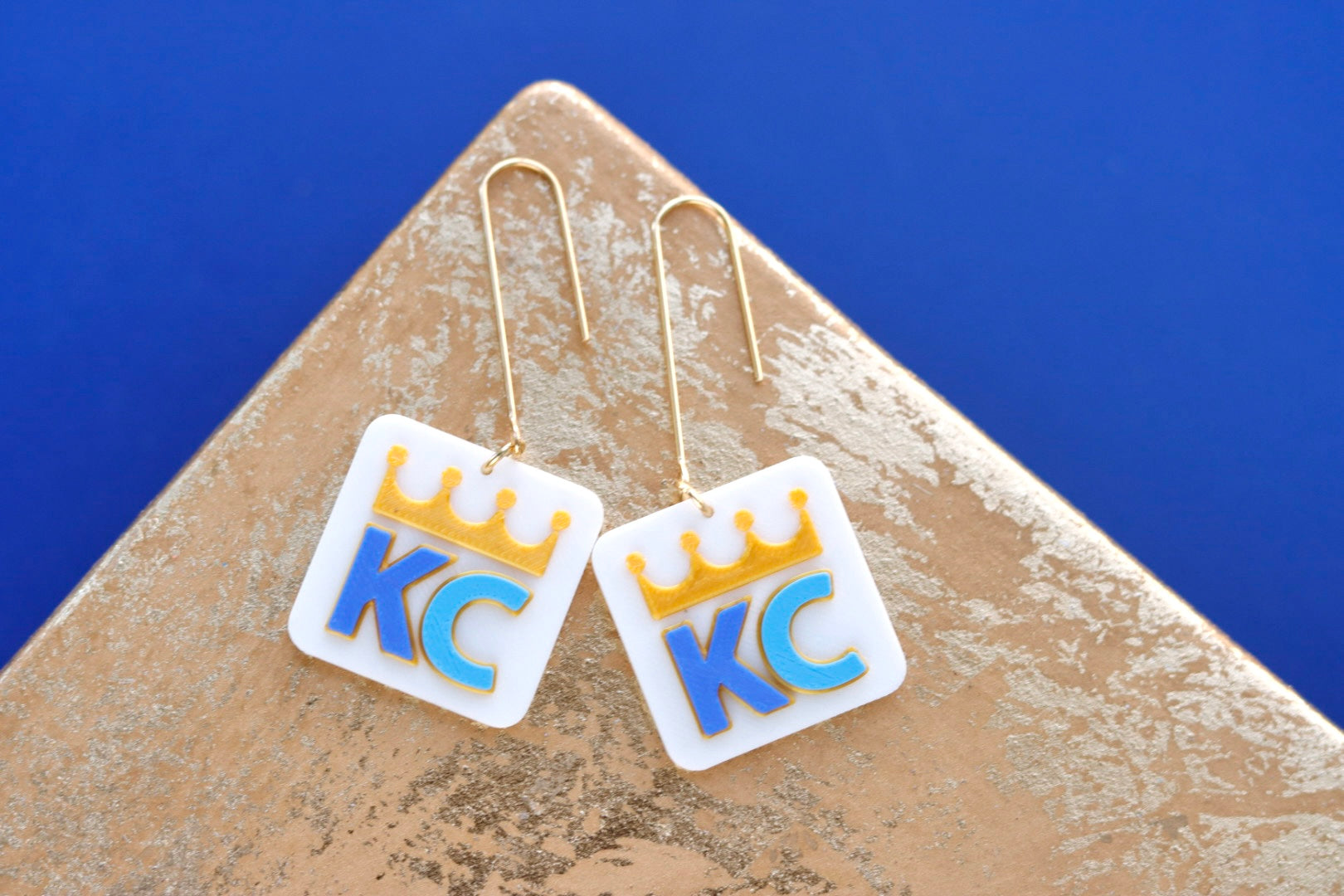 Handcrafted 3D Printed Earrings- KC Baseball Squares- White